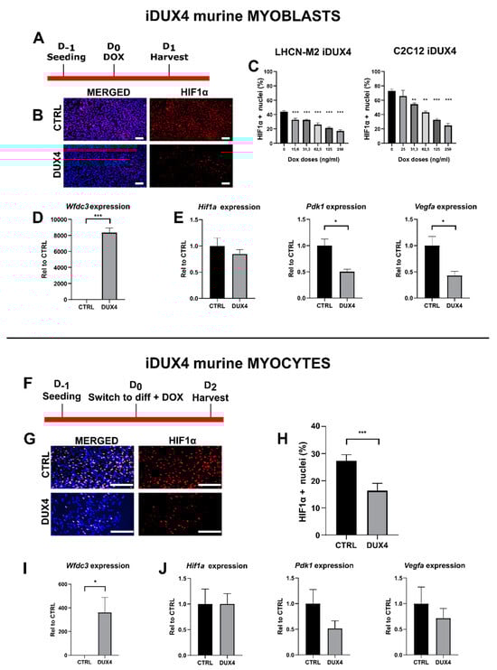 2.3. Effect of DUX4 on HIF1α Pathway in Murine Myoblasts and Myocytes In Vitro