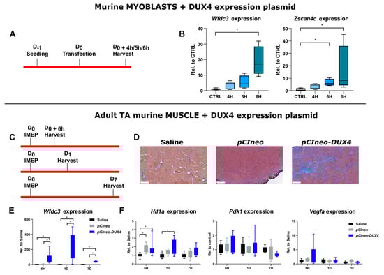 2.4. Characterization of HIF1α Pathway Modifications upon DUX4 Expression in Adult Mouse Muscle In Vivo