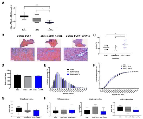 2.5. Effect of a Targeted Hif1a Knockdown on DUX4-Mediated Muscle Lesions In Vivo