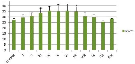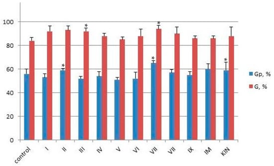 | Compounds | Gp, % | G, % | Root, cm | Shoot, cm | RWC, % |