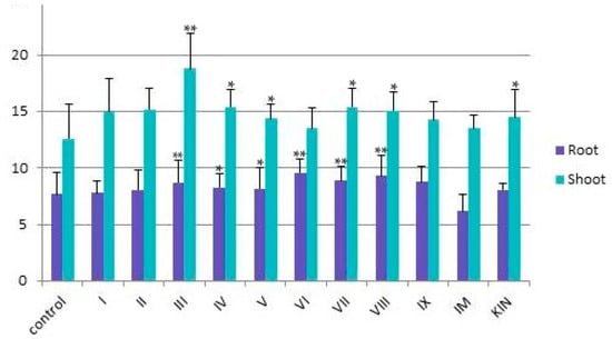 - Oshchepkov, M.S.; Kalistratova, A.V.; Savelieva, E.M.; Romanov, G.A.; Bystrova, N.A.; Kochetkov, K.A. Natural and synthetic cytokinins and their applications in biotechnology, agrochemistry and medicine. Russ. Chem. Rev. 2020, 89, 787–810. [Google Scholar] [CrossRef]