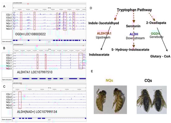 - Wang, H.; Liu, Z.; Wang, Y.; Ma, L.; Zhang, W.; Xu, B. Genome-Wide Differential DNA Methylation in Reproductive, Morphological, and Visual System Differences between Queen Bee and Worker Bee (Apis mellifera). Front. Genet. 2020, 11, 770. [Google Scholar] [CrossRef] [PubMed]