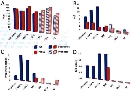 2.2.1. rTyr/P406L Docking: Substrates and Products of the Enzymatic Reaction