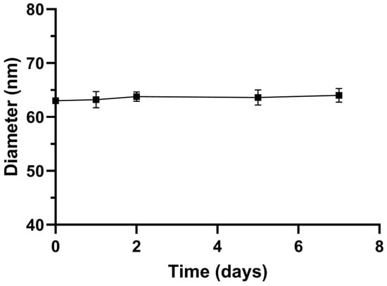 Colloidal stability of lipoPDA@MB stored in phosphate buffer pH 7.0 at 4 °C in terms of mean diameter variations over time. Data are expressed as mean ± SD (n = 3).