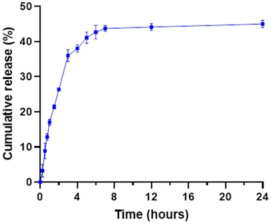 Cumulative in vitro release of MB from lipoPDA@MB vesicles in PBS 1X, pH 7.4. The error bars represent the experiment’s standard deviation (S.D.) (n = 3).