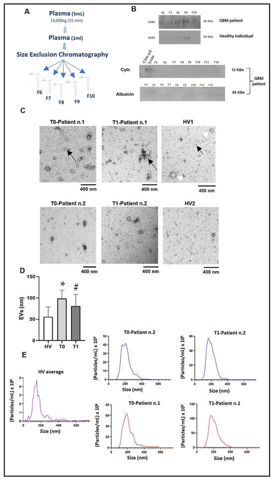 2.1. Plasma-Derived EVs Show Differences in Their Size and Number between GBM Patients and Healthy Controls