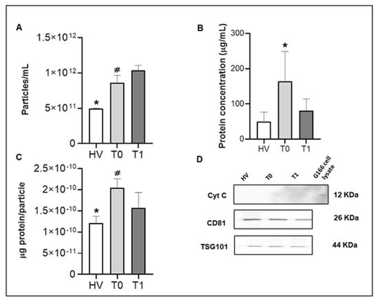 - Kowal, J.; Arras, G.; Colombo, M.; Jouve, M.; Morath, J.P.; Primdal-Bengtson, B.; Dingli, F.; Loew, D.; Tkach, M.; Théry, C. Proteomic comparison defines novel markers to characterize heterogeneous populations of extracellular vesicle subtypes. Proc. Natl. Acad. Sci. USA 2016, 113, E968–E977. [Google Scholar] [CrossRef]