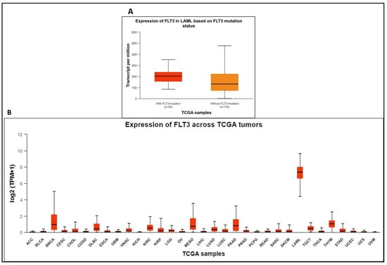 - Parcells, B.W.; Ikeda, A.K.; Simms-Waldrip, T.; Moore, T.B.; Sakamoto, K.M. FMS-like tyrosine kinase 3 in normal hematopoiesis and acute myeloid leukemia. Stem Cells 2006, 24, 1174–1184. [Google Scholar] [CrossRef] [PubMed]
