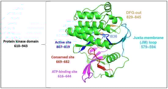 - Griffith, J.; Black, J.; Faerman, C.; Swenson, L.; Wynn, M.; Lu, F.; Lippke, J.; Saxena, K. The structural basis for autoinhibition of FLT3 by the juxtamembrane domain. Mol. Cell 2004, 13, 169–178. [Google Scholar] [CrossRef]
