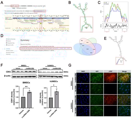 APA StyleCui, X., Dong, H., Luo, S., Zhuang, B., Li, Y., Zhong, C., Ma, Y., & Hong, L. (2024). Long Non-Coding RNA-Cardiac-Inducing RNA 6 Mediates Repair of Infarcted Hearts by Inducing Mesenchymal Stem Cell Differentiation into Cardiogenic Cells through Cyclin-Dependent Kinase 1. International Journal of Molecular Sciences, 25(6), 3466. https://doi.org/10.3390/ijms25063466