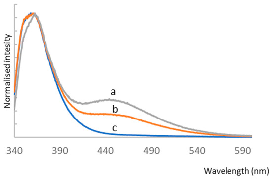Emission spectra of (TPP)2-CYSTAM. Concentration: 1.37 × 10−5 M. λexc for a = 313, b = 330 and c = 266 nm.