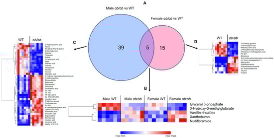 2.1. Obesity Alters the Brain Metabolome in a Sex-Specific Manner