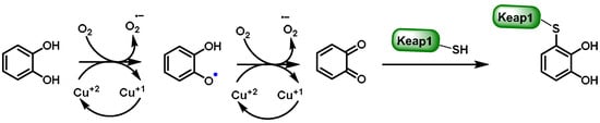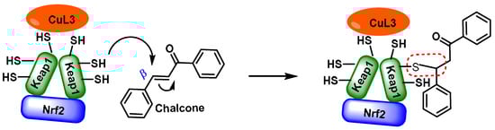 Michael acceptor reaction with the thiol group of cysteines in the Keap1 protein.
