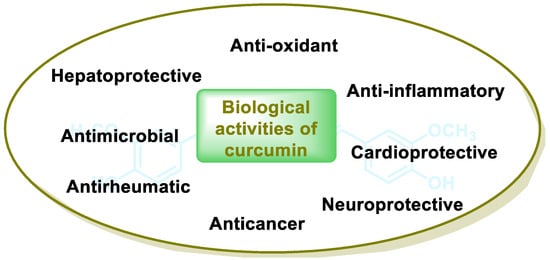 - Peng, Y.; Ao, M.; Dong, B.; Jiang, Y.; Yu, L.; Chen, Z.; Hu, C.; Xu, R. Anti-Inflammatory Effects of Curcumin in the Inflammatory Diseases: Status, Limitations and Countermeasures. Drug Des. Devel Ther. 2021, 15, 4503–4525. [Google Scholar] [CrossRef]