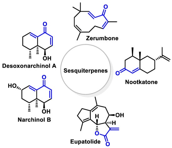Michael acceptor molecules can bind with nucleophilic residues in proteins, forming covalent complexes and impeding the protein’s properties in order to play a physiological role. So, they can regulate the Keap1–NRF2–ARE and NF-κB pathways and can be used in diseases such as inflammation, cancer, and oxidative stress [105]. Michael acceptor molecules can change the biological conformation of proteins or enzymes containing nucleophilic groups, thus inducing consequent physiological variations, and the following compounds from this group have now been approved as drugs for a variety of treatments [106]: