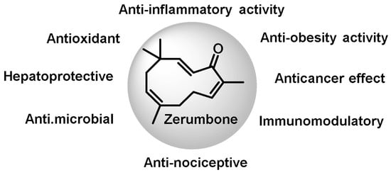 - Prasannan, R.; Kalesh, K.A.; Shanmugam, M.K.; Nachiyappan, A.; Ramachandran, L.; Nguyen, A.H.; Kumar, A.P.; Lakshmanan, M.; Ahn, K.S.; Sethi, G. Key cell signaling pathways modulated by zerumbone: Role in the prevention and treatment of cancer. Biochem. Pharmacol. 2012, 84, 1268–1276. [Google Scholar] [CrossRef] [PubMed]