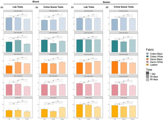 Medina-Paz, F.; Kuba, B.; Kryvorutsky, E.; Roca, G.; Zapico, S.C. Assessment of Blood and Semen Detection and DNA Collection from Swabs up to Three Months after Deposition on Five Different Cloth Materials. Int. J. Mol. Sci. 2024, 25, 3522. https://doi.org/10.3390/ijms25063522