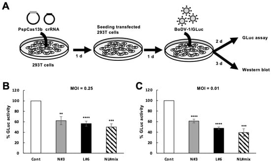 Chicago/Turabian StyleSasaki, Shigenori, Hirohito Ogawa, Hirokazu Katoh, and Tomoyuki Honda. 2024. "Suppression of Borna Disease Virus Replication during Its Persistent Infection Using the CRISPR/Cas13b System" International Journal of Molecular Sciences 25, no. 6: 3523. https://doi.org/10.3390/ijms25063523