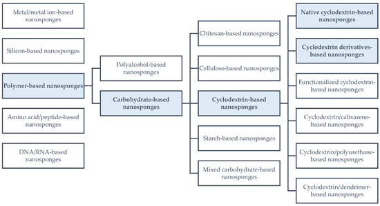 - Third generation: stimulus-responsive nanosponges—sensitive to environmental stimuli such as temperature, pH, or redox potential, which can alter their physicochemical properties to trigger or enhance the release of the drug.