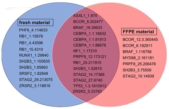 | FFPE material | ASXL1_13.1.451988, | BCOR_1.134332, | CBL_2.191578, |