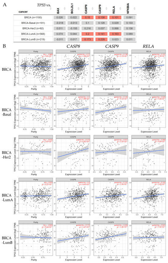 3.2.1. Gene Correlation in Breast Cancer Patients