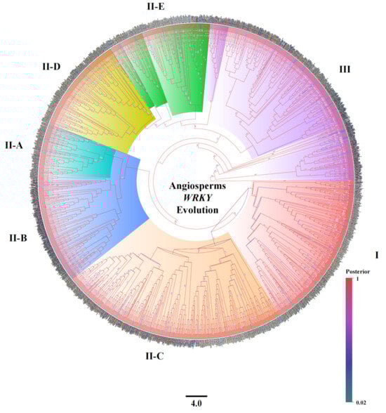 Wu, W.; Yang, J.; Yu, N.; Li, R.; Yuan, Z.; Shi, J.; Chen, J. Evolution of the WRKY Family in Angiosperms and Functional Diversity under Environmental Stress. Int. J. Mol. Sci. 2024, 25, 3551. https://doi.org/10.3390/ijms25063551