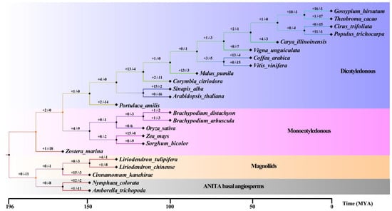 | Populus trichocarpa | Dicotyledonous | 18 | 8 | 10 | Positive | 18 |
