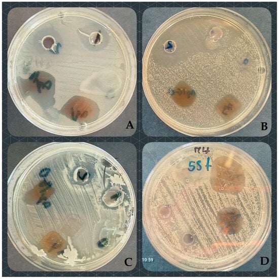 Bacterial isolates were transferred into sterile 0.85% saline solutions to obtain 0.5 MacFarland suspensions, which were then streaked onto Mueller–Hinton agar (Argenta, Poland). Foils were cut into 5 × 5 mm squares with surface-sterilized scissors. Both squares of foils and liquid emulsions were sterilized under UV light for 30 min.