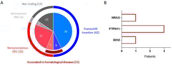 - Stasik, S.; Eckardt, J.N.; Kramer, M.; Rollig, C.; Kramer, A.; Scholl, S.; Hochhaus, A.; Crysandt, M.; Brummendorf, T.H.; Naumann, R.; et al. Impact of PTPN11 mutations on clinical outcome analyzed in 1529 patients with acute myeloid leukemia. Blood Adv. 2021, 5, 3279–3289. [Google Scholar] [CrossRef]