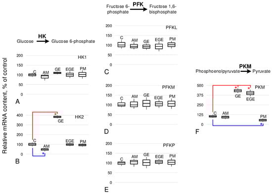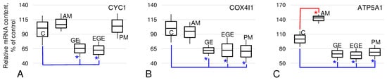 2.2. Gene Expression of the Main Complexes, Involving in the OXPHOS and Glycolysis