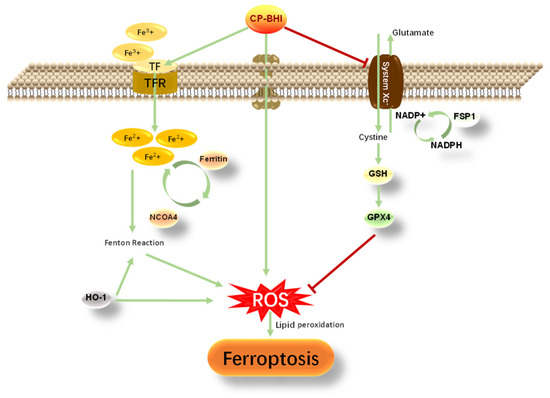 Cells were seeded in a six-well plate at a density of 1 × 106 cells/well and treated with CP-BHI. Then, cells were dissociated by the total protein extraction kit (KeyGEN, Nanjing, China). The proteins in the samples were run on 10% SDS polyacrylamide gel and then transferred to polyvinylidene fluoride membrane (Millipore, St. Louis, MO, USA). The proteins were incubated with primary antibody (Abmart, Shanghai, China) overnight at 4 °C and secondary anti-rabbit HRP-conjugated antibodies (Abmart, China) for 1 h at RT. Then, the membranes were developed in chemiluminescence. The primary antibodies used were listed as follows: GPX4, FSP1, xCT, NCOA4, HO-1, TF, TFR, ferritin and β-actin.