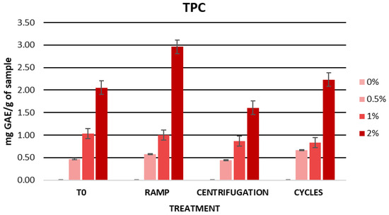 Many agro-industrial by-products are rich in phenolic compounds [10]. Polyphenols have been shown to have antioxidant and anti-inflammatory properties and may be ideal for preventing and mitigating various skin disorders [10,11]. In the skin, phenolic compounds act through various mechanisms of action including, for example, the elimination of radical species, prevention of cellular senescence, inhibition of dermal proteinases, and inhibition of inflammatory processes [5]. In addition, these compounds have been found to stimulate collagen production in fibroblasts and are involved in the regulation of wound healing [12]. In vivo studies have demonstrated the effects of polyphenol-rich botanical extracts on the skin [13]. For example, grape stem and seed extracts, rich in polyphenols such as catechin, resveratrol, and gallic acid, have been shown to be excellent antioxidant and anti-aging agents [14,15]. It has also been observed that green tea extract and mango peel extract, rich in epigallocate-chin-3-gallate, are able to inhibit inflammatory enzymes and cytokines, and that quercetin-rich extracts such as passion fruit peel and seeds block UV-induced inflammation [16,17,18].