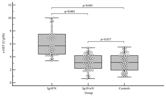Frkovic, M.; Turcic, A.; Gagro, A.; Srsen, S.; Frkovic, S.H.; Rogic, D.; Jelusic, M. Erythrocyte Glutathione S-Transferase Activity as a Sensitive Marker of Kidney Function Impairment in Children with IgA Vasculitis. Int. J. Mol. Sci. 2024, 25, 3795. https://doi.org/10.3390/ijms25073795