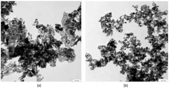 TEM microphotographs of the nanoparticles: (a) ZnO; (b) Fe3O4.