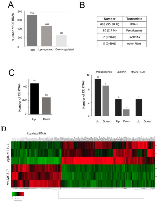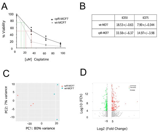 2.2. Changes in the Transcriptome of Cisplatin-Resistant MCF7 Cells