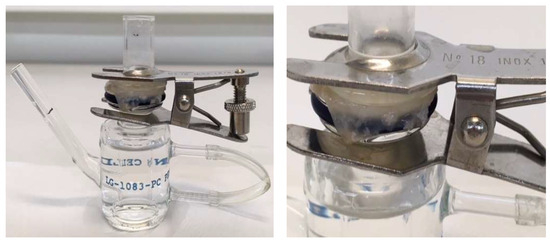 The batch n. 3 MI-loaded micro delivery systems (MPs, 50 mg, DL = 14%) were tested in a permeation study to assess a potential increase in drug permeation when compared with the pure MI, using the permeation of a membrane made of porcine colon mucosa in a Franz cell permeation model as the metric. For this purpose, two Franz cells were used simultaneously, set up as shown in Figure 3, and the experiment was repeated three times [29,30].