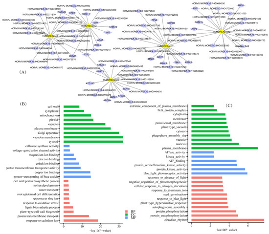 2.5. Co-Expression Network and GO Enrichment Analysis of Hvanns Involved in Tissues and under Stress Conditions