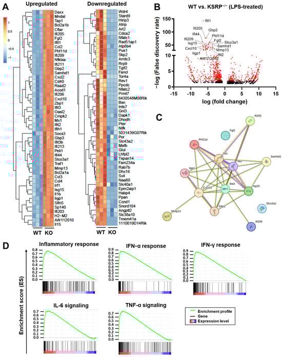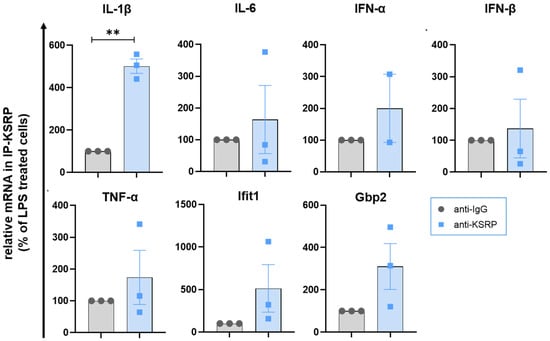 2.1. KSRP−/− Mice Displayed Higher mRNA Expression Levels of Stimulation-Induced Cytokines