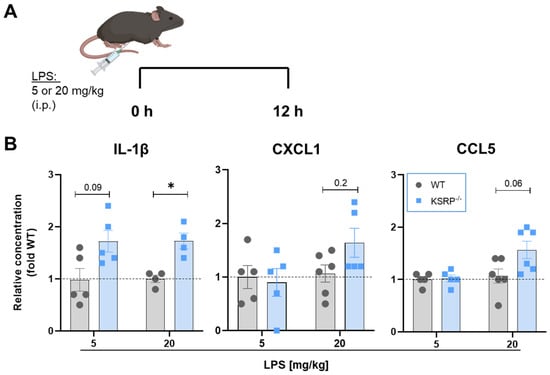 2.5. KSRP−/− Display Tendencies to Higher Proinflammatory Cytokine Production in LPS-Induced Sepsis