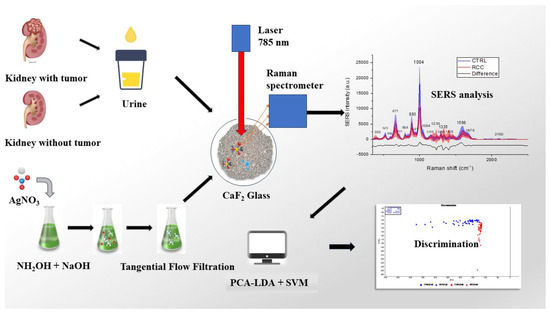 - Bai, X.; Lin, J.; Wu, X.; Lin, Y.; Zhao, X.; Du, W.; Gao, J.; Hu, Z.; Xu, Q.; Li, T.; et al. Label-Free Detection of Bladder Cancer and Kidney Cancer Plasma Based on SERS and Multivariate Statistical Algorithm. Spectrochim. Acta A Mol. Biomol. Spectrosc. 2022, 279, 121336. [Google Scholar] [CrossRef] [PubMed]