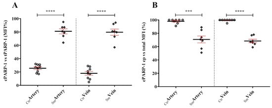 16]. To gain valuable insights into the extent of DNA damage that blood vessel endothelial cells endure under stress conditions induced by smoking, it is crucial to examine the nucleocytoplasmic localization of PARP-1, both in its cleaved and full-length forms. This approach provides significant data, allowing a comprehensive assessment of the severity of DNA damage in these cells.