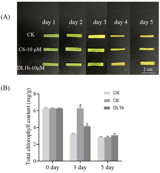 2.2.3. Bioactivity of C6 in Dark-Induced Leaf Senescence