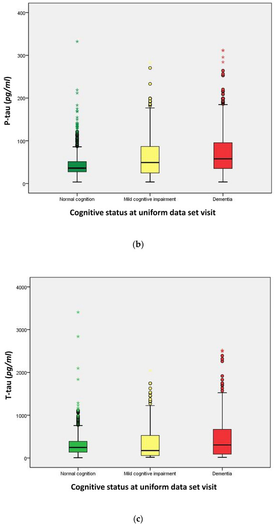 2.3. Distribution of Cerebrospinal Fluid (CSF) Biomarkers