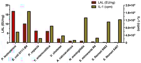 2.3.2. Comparison of TLR4, LAL, and LC-MS2 Analyses in LPSs from Different Genera with Various Lipid A Structures