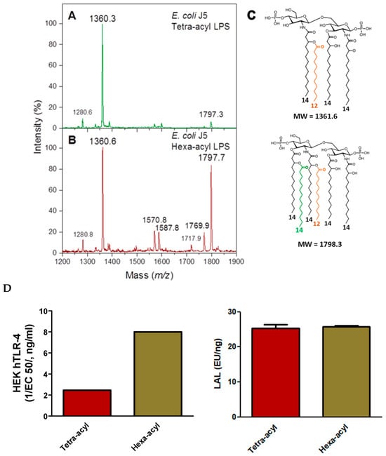 2.3.1. Comparison of TLR-4 Induction and LAL Detection with Tetra- and Hexa-Acylated Lipid A in E. coli J5 LPS