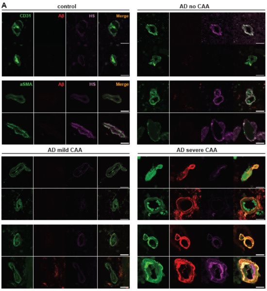 In this study, we investigated the expression of HS within the prefrontal cortex cerebrovasculature and its correlation with CAA in AD and AD risk factors, including gender and ApoE isoform.