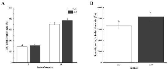 2.1. Effect of Exogenous D-Arg Application on the Proliferation of EC and Somatic Embryo Induction of Litchi