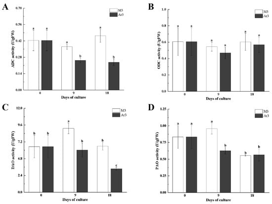 4.3. Determination of Key Enzyme Activity for Polyamine Synthesis and Metabolism