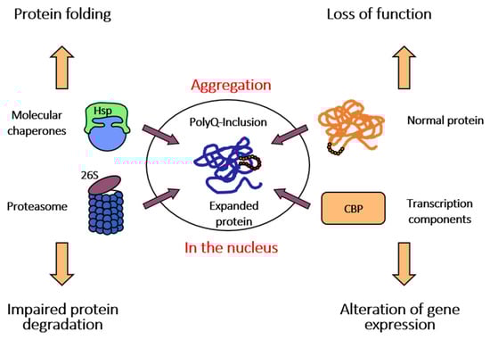 - Silva, A.; de Almeida, A.V.; Macedo-Ribeiro, S. Polyglutamine expansion diseases: More than simple repeats. J. Struct. Biol. 2018, 201, 139–154. [Google Scholar] [CrossRef] [PubMed]