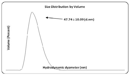 Hydrodynamic diameter distribution (in % volume) in AgNPs.